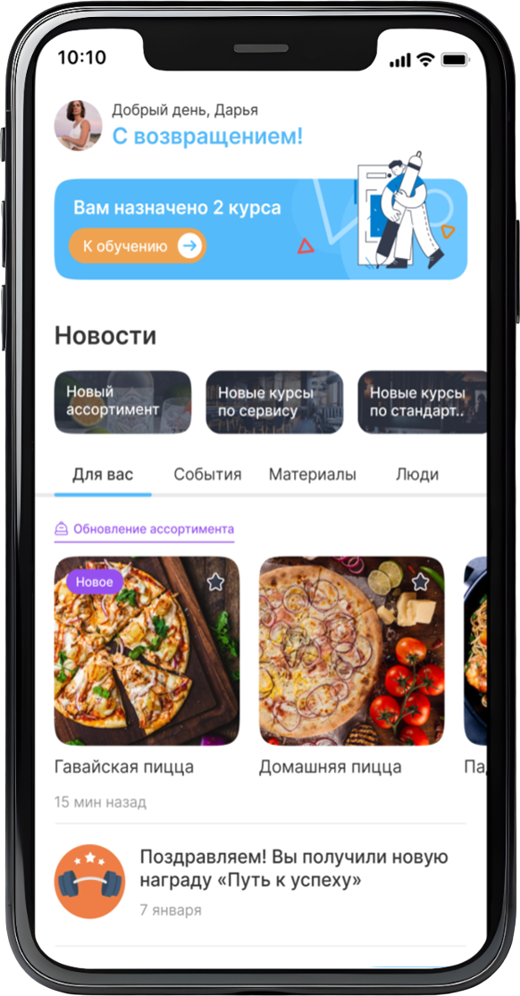 В мобильном приложении команда изучает меню, правила обслуживания и техники продаж в удобном формате без закрепленных рабочих мест. Используются игровые механики и тесты. Обучение увлекательное, и новички быстрее адаптируются, зарабатывают больше чаевых и повышают уровень сервиса.