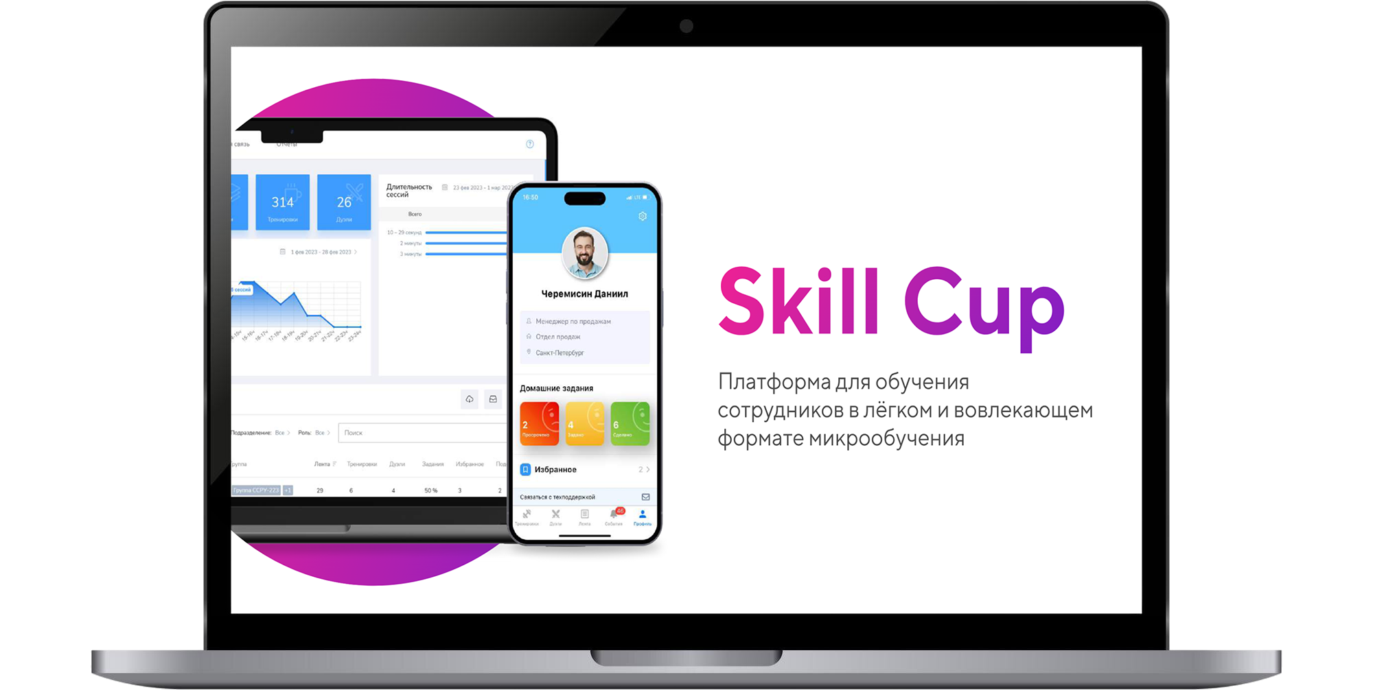 Skill Cup напоминает социальную сеть: сотрудники изучают контент в коротких видеоформатах, взаимодействуют с коллегами, соревнуются в знании материала. Используются короткие видео, социальные и игровые механики. Сервис омниканальный: есть доступ с компьютера, смартфона или через Telegram. Контент синхронизируется на всех устройствах.