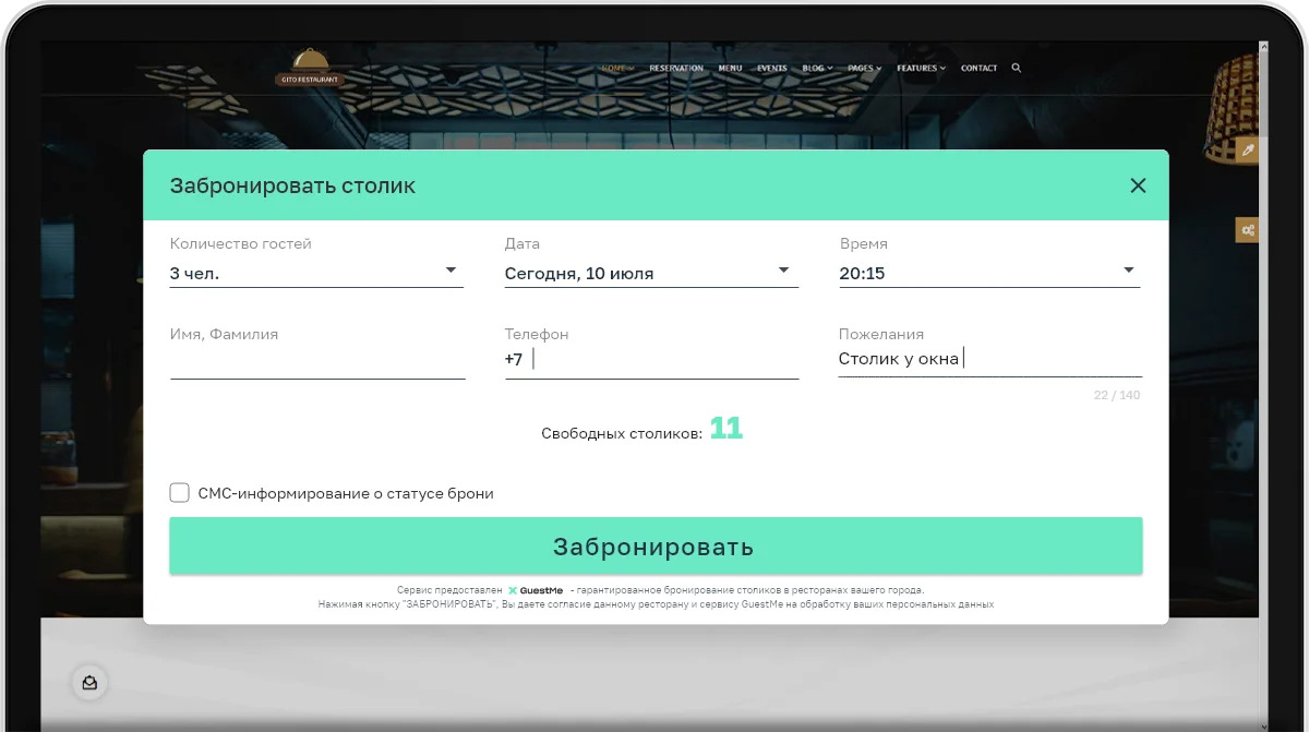 GuestMe — это облачный сервис для автоматизации бронирования столиков в ресторанах и кафе. Он позволяет мгновенно принимать резервирование через сайт и социальные сети, обеспечивая удобство как для клиентов, так и для сотрудников заведения.