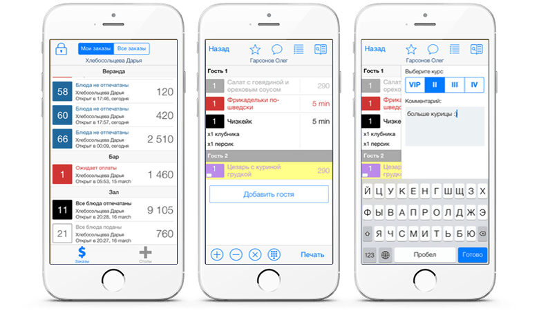 Поддержка стоп-листов. Это дает возможность официанту оперативно получать информацию об отсутствующих позициях в меню. А, значит, избавить гостя от разочарования из-за закончившего стейка.