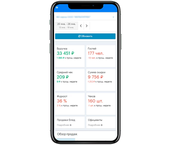 Сервис для доступа ко всем важным показателям ресторана в режиме онлайн из любой точки мира с экрана вашего смартфона.
