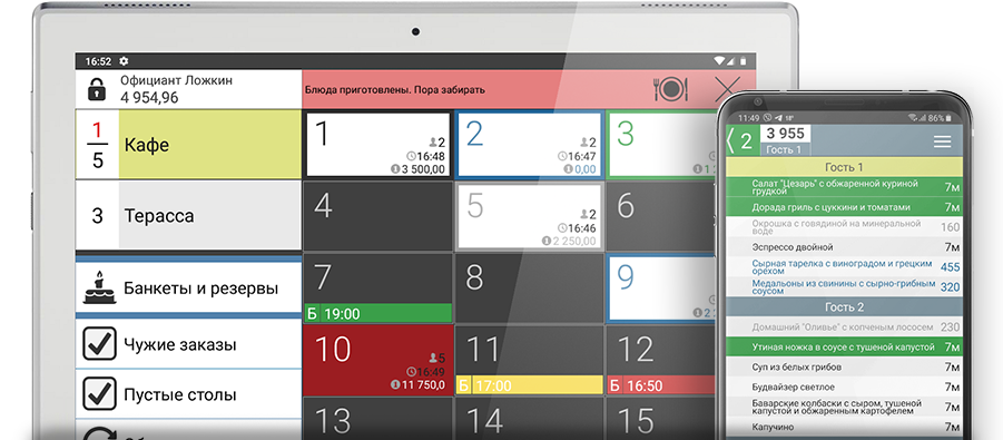 - Резервы и банкеты: бронируйте столы и принимайте заказы на банкеты сразу на месте.