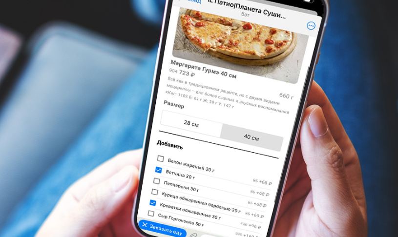 Внутри чата отображается полноценное меню с визуальной подачей, аналогичной мобильным приложениям.
