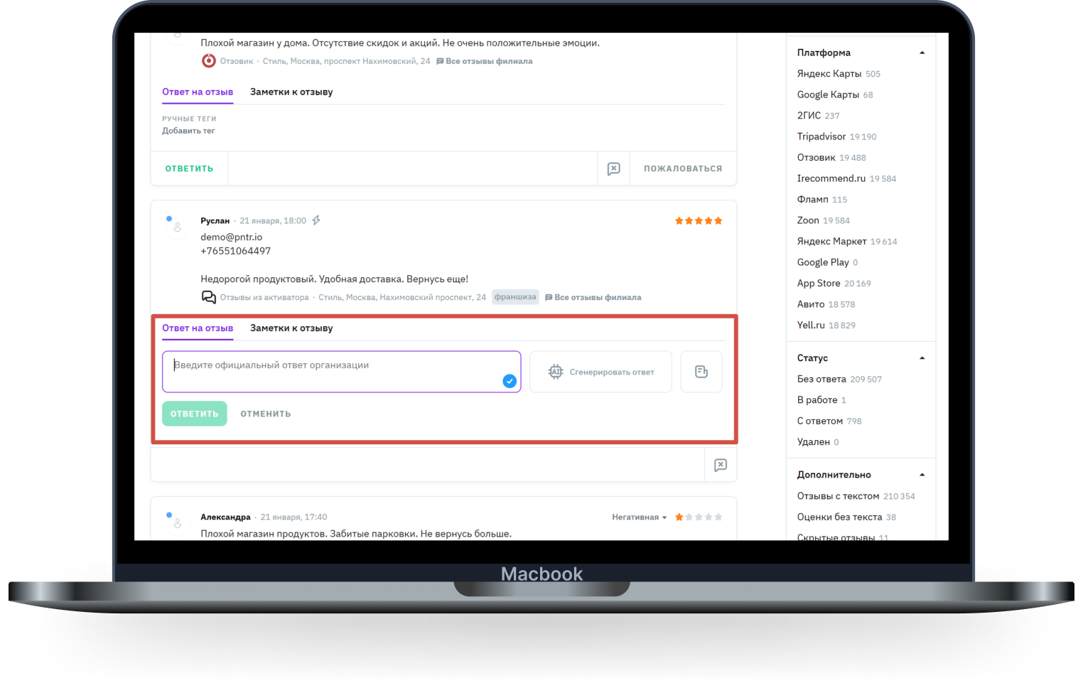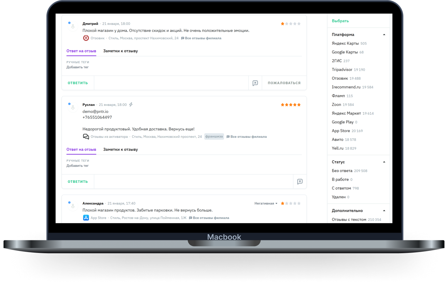 работайте с отзывами с разных площадок в одном окне